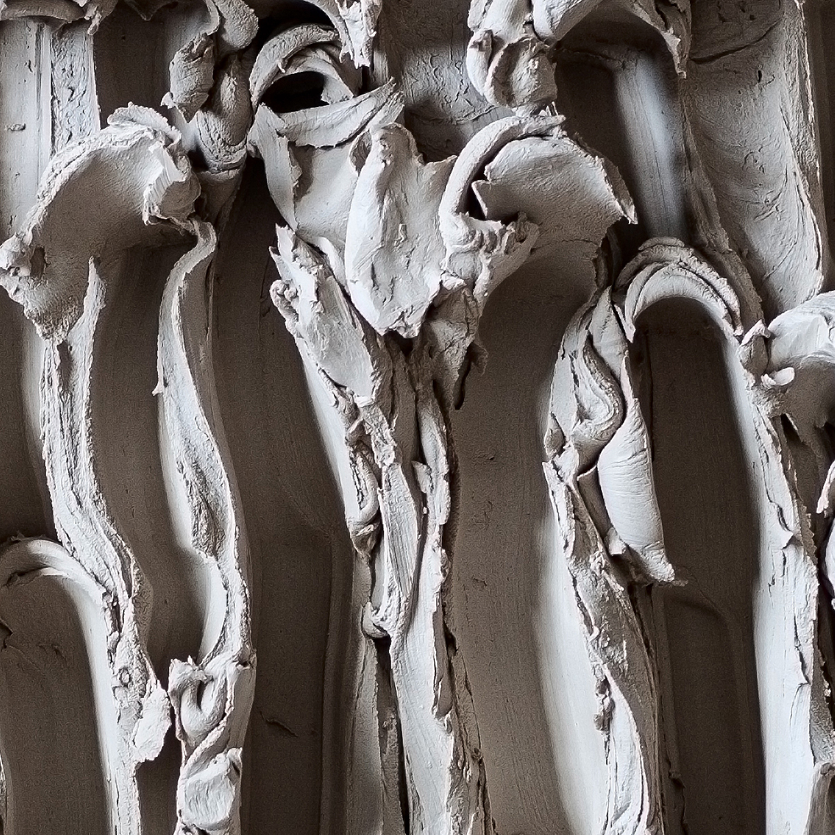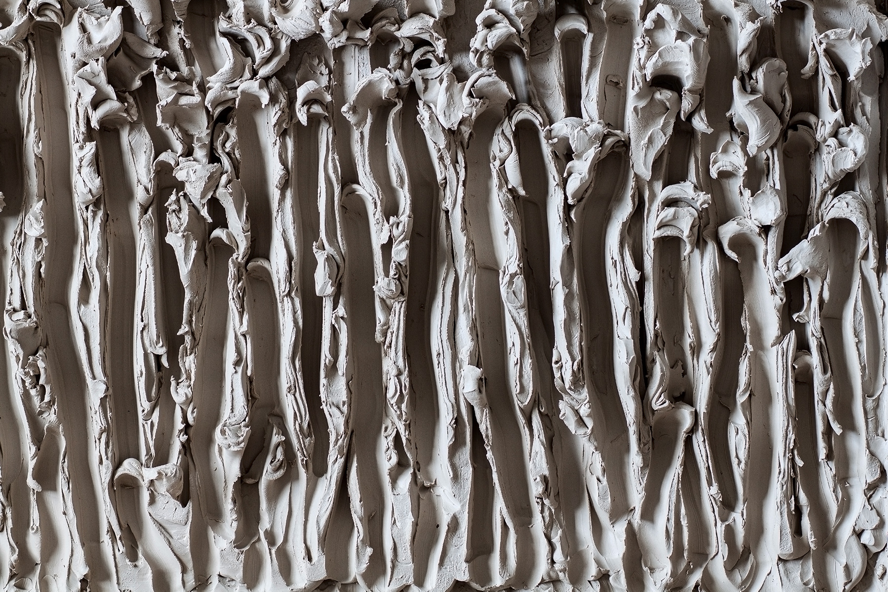 De middelvinger van de rechter hand ploegt hier door de vrij zachte klei en laat diepe voren na.
