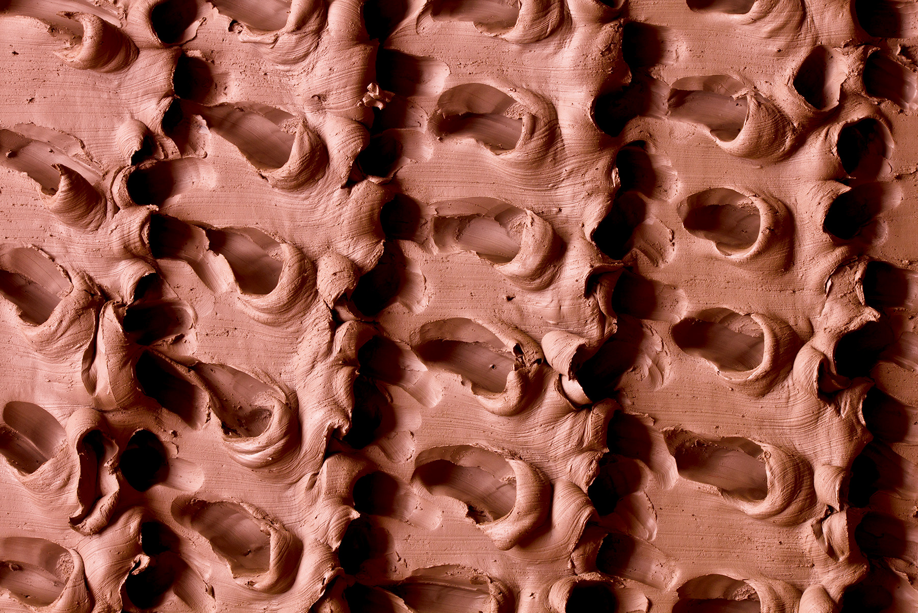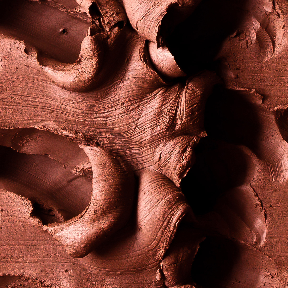 duim en vingers knijpen de grond. De klei is softwarematig terra gekleurd.