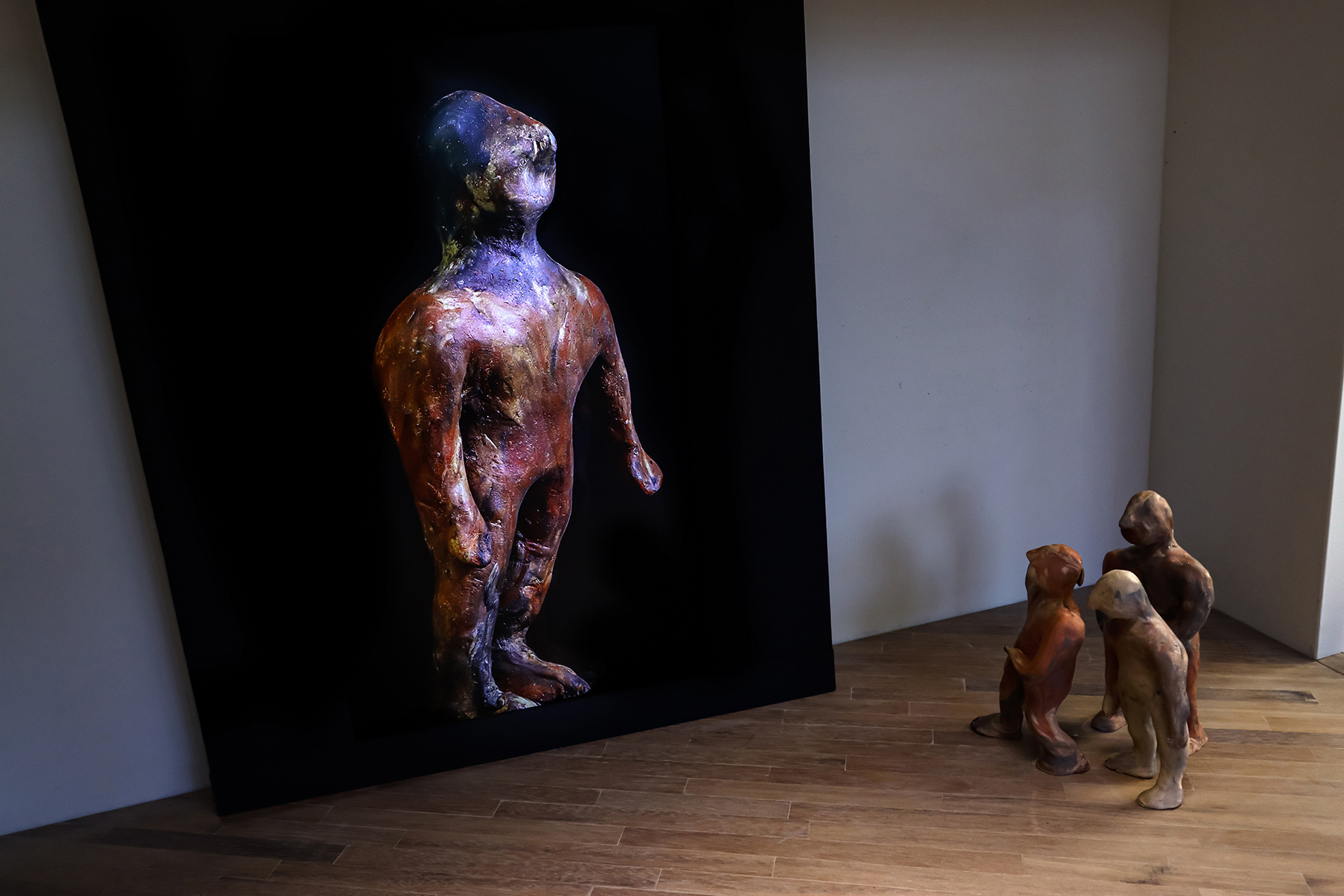 De AARDgasten kijken naar brokstukken en naar zichzelf. Loop en kijk met ze mee in de zalen 15 en16.